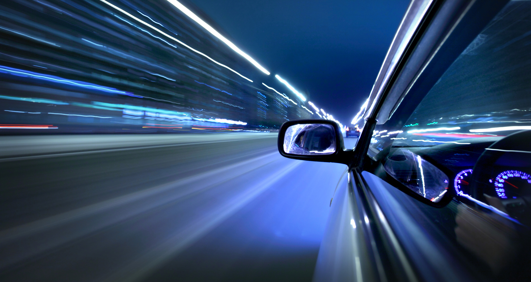 Стоковая фотография боковое стекло авто мчащегося по городу.