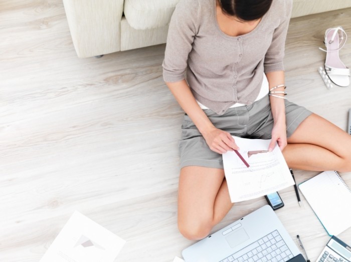 Девушка с листком бумаги сидя на полу.