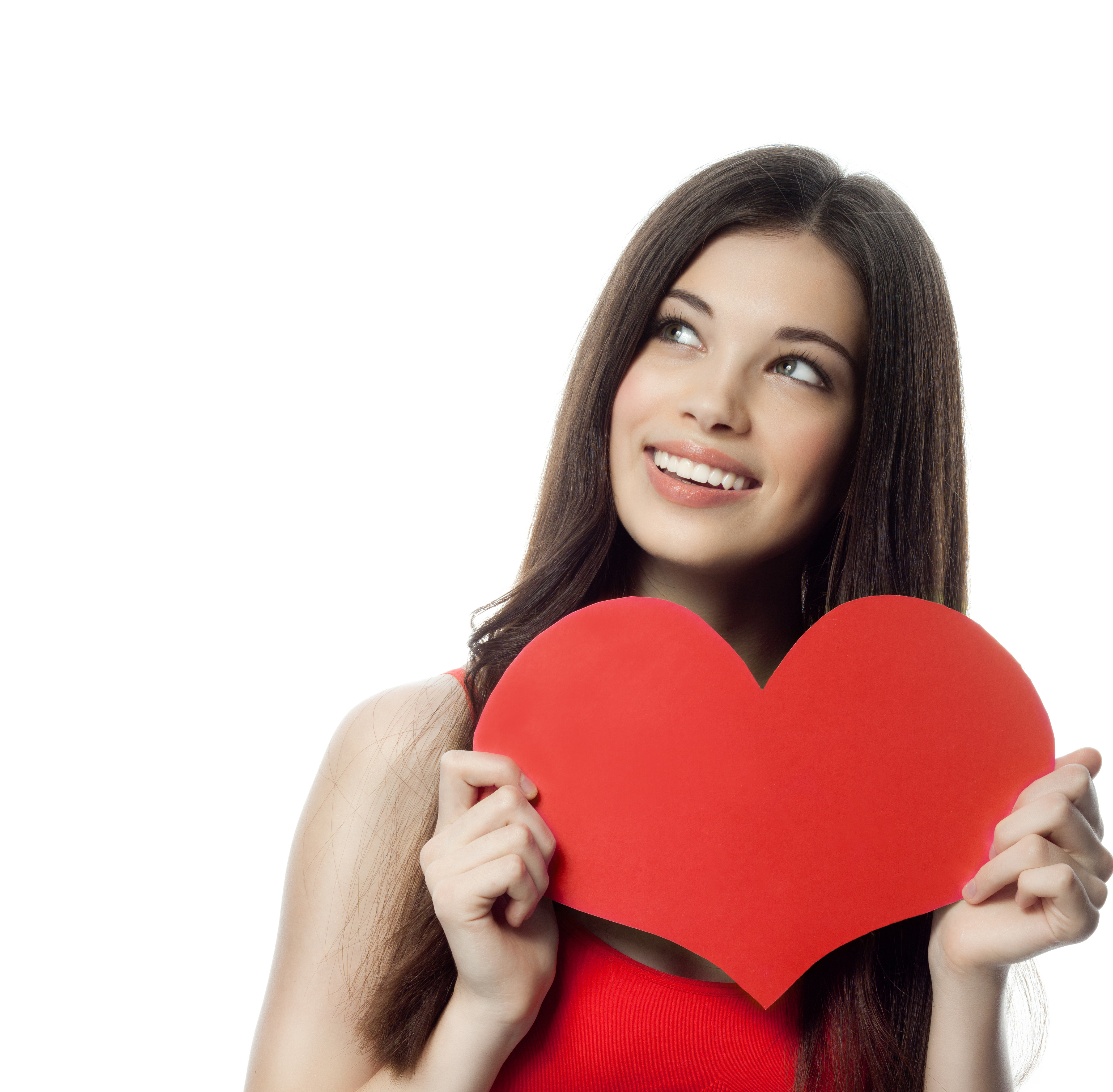 Девушка в красном платье с сердцем — Girl in a red dress with a heart